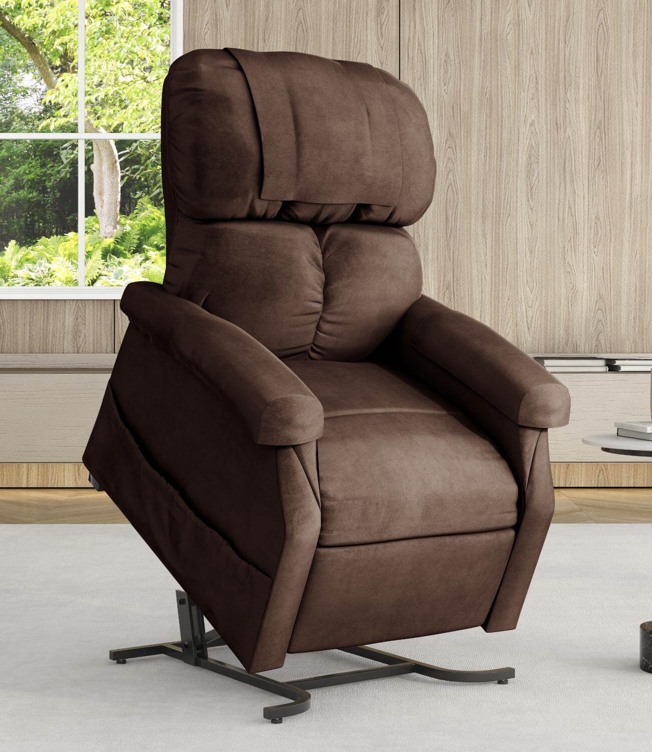 Der Aufstehsessel ist ein- oder zweimotorig und in fünf verschiedenen Farben, Bezugsstoff Microfaser-Samt mit hoher Abriebfestigkeit, erhältlich.