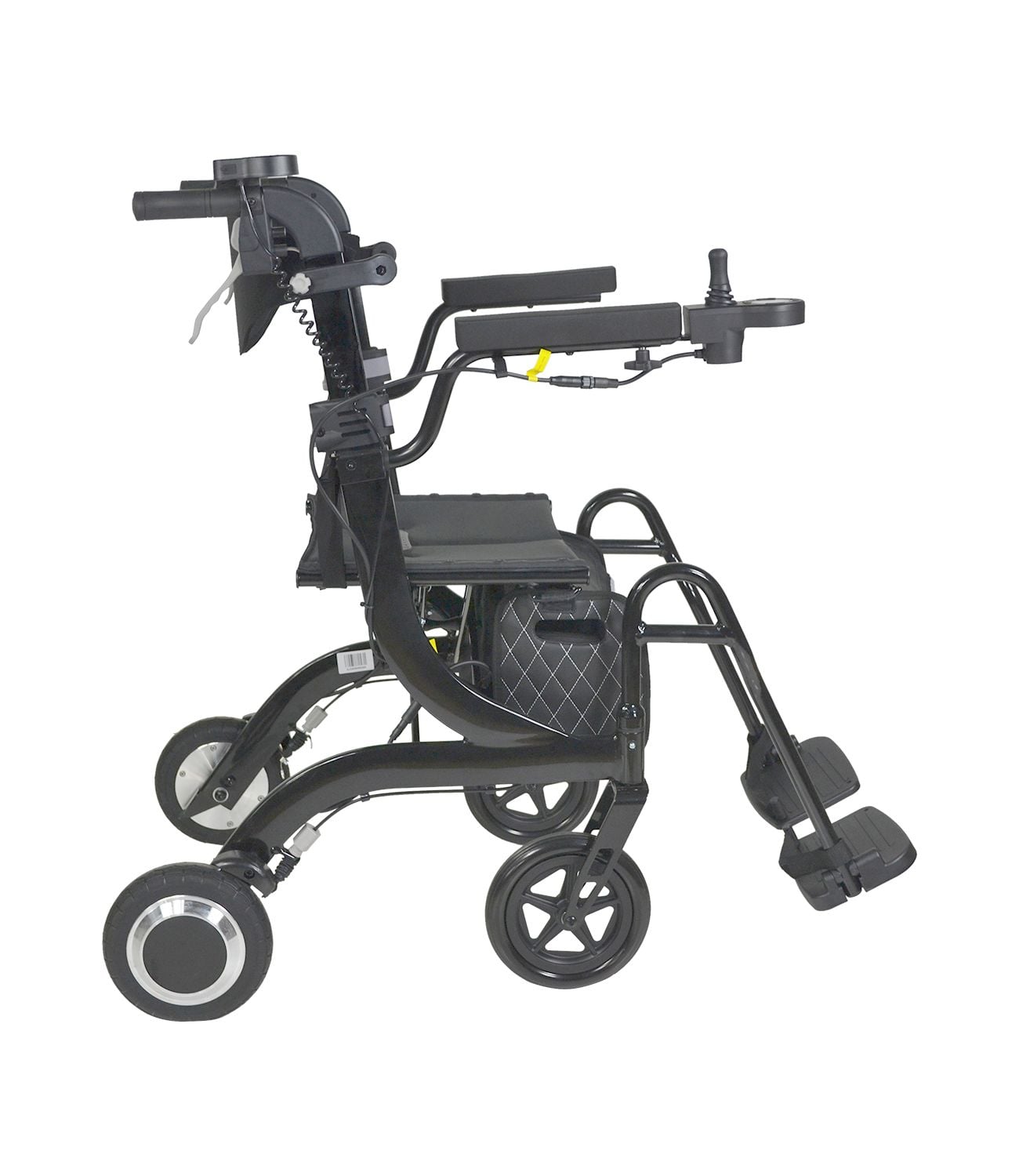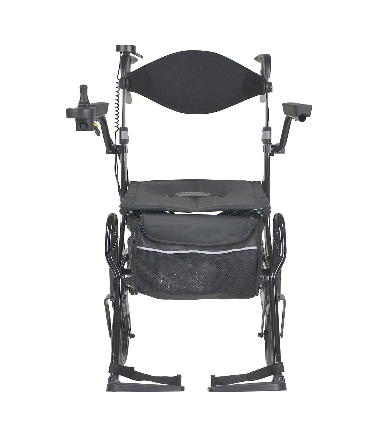 „Scorpus LF“ kombiniert die Funktionen eines klassischen Rollators mit denen eines motorisierten Hilfsmittels – so können Sie ihn je nach Situation entweder als unterstützende Gehhilfe oder als elektrischen Sitz-Rollator nutzen. Dank des elektrischen Antriebs überwinden Sie Steigungen mühelos, lange Strecken werden entspannter. Gleichzeitig lässt sich der Gerät kompakt zusammenklappen und bequem transportieren – etwa im Auto oder im Wohnraum.