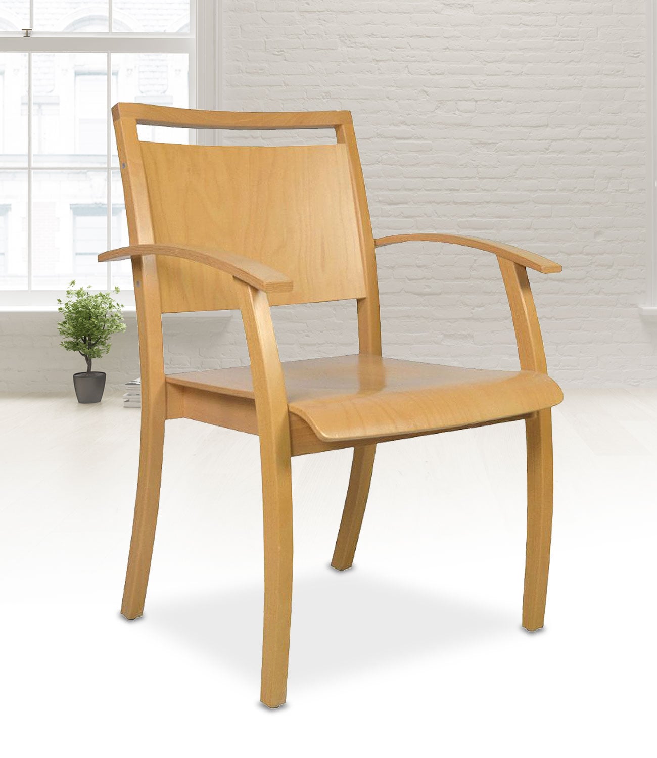 Dieser Holzstuhl für Senioren hat eine angenehm geschwungene Armlehne und Stuhlbeine. Das Gestell ist aus massiver Buche und kann in verschiedenen Holzfarben geliefert werden. Der Holzstuhl ist stapelbar. Das Einsatzgebiet liegt in Seniorenheimen und Kliniken, aber auch private Bewohnerzimmer und private Haushalte werden beliefert.