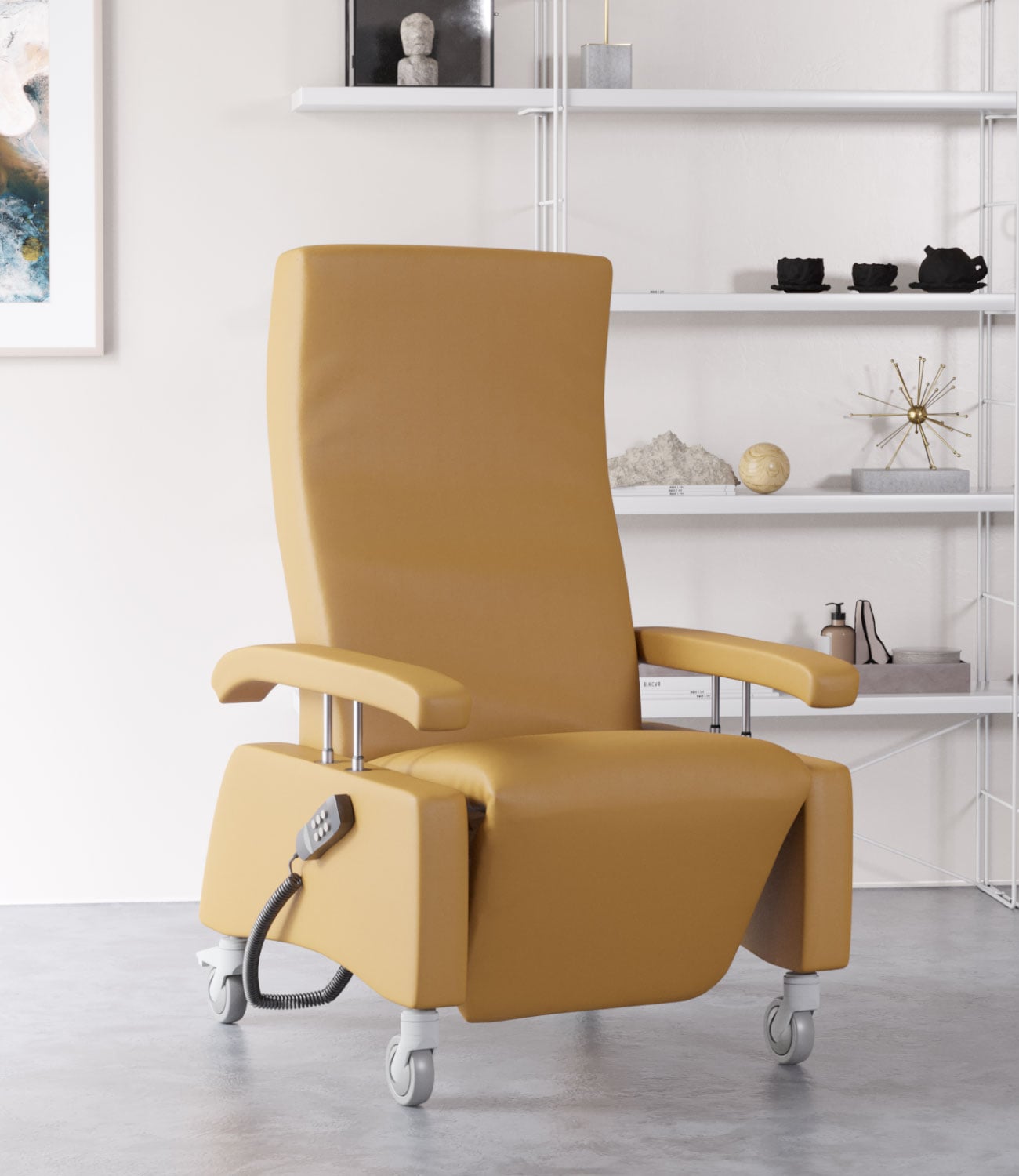 Hochwertiger Pflegesessel mit versenkbaren Armlehnen für leichteres Umsetzen