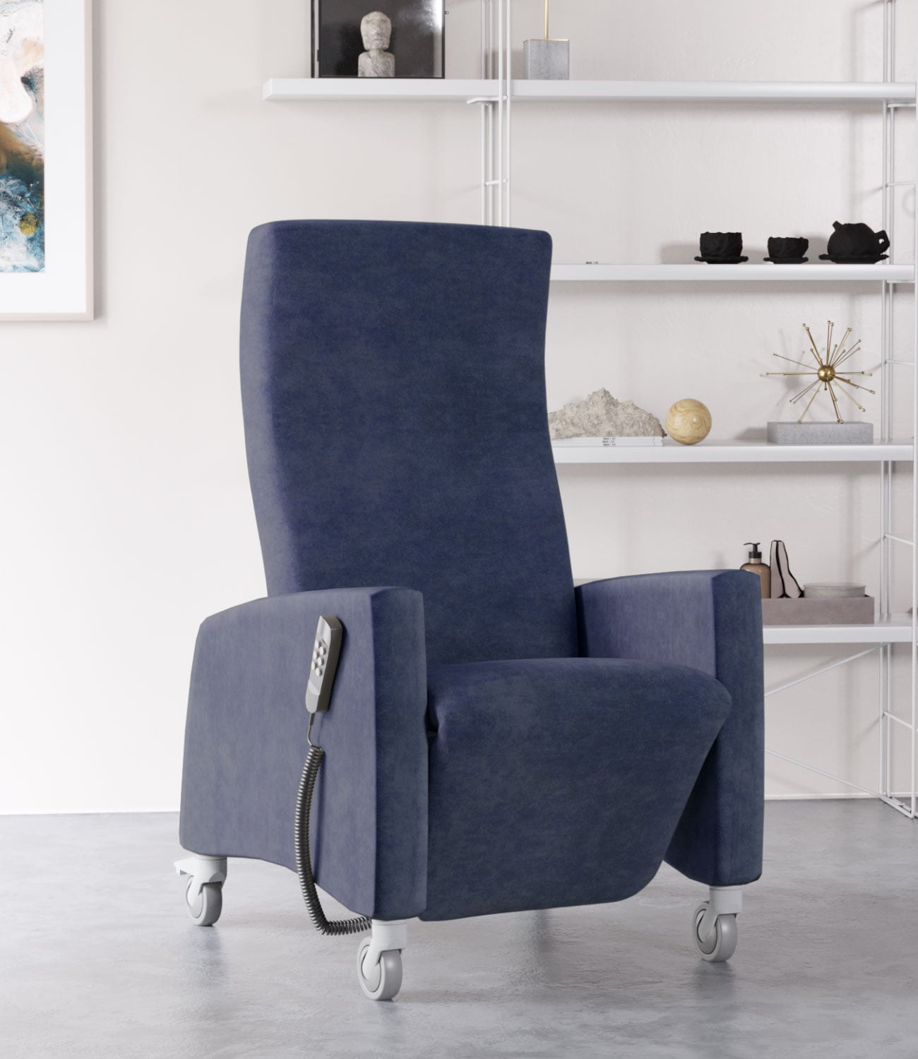 Der Pflegesessel Lutra Relax eignet sich sowohl für die häusliche Pflege als auch für professionelle Pflegeeinrichtungen. Mit einer Außenbreite von ca. 70 cm passt er problemlos durch die Standardtürbreite von 74 cm. Dadurch kann die Position leicht verändert werden, so dass Nutzer am sozialen Leben in der Küche, im Wohnzimmer oder im Freien teilnehmen kann, ohne auf Mobilität verzichten zu müssen. Der Gesundheitssessel bietet beste Sitzergonomie und entlastet Rücken und Gelenke. Die Rückenlehne lässt sich separat stufenlos verstellen und die Sitzpositionen können sowohl manuell als auch über einen 2-Motoren-Handschalter eingestellt werden. So kann der Nutzer je nach Bedarf zwischen aufrechter Sitzposition, Relaxposition und Liegeposition wählen. Umfangreiches Zubehör wie die Sitzheizung, der abnehmbare Tisch oder das Nackenkissen runden das Angebot ab. Große, stabile Rollen und der Schiebegriff sorgen beim Pflegesessel Lutra Relax für Mobilität. Die hochwertigen Kunststoffrollen lassen sich leicht schieben und sind auch für hochwertige Parkettböden geeignet. Der Pflegesessel Lutra Relax ist für ein maximales Personengewicht von 120 kg ausgelegt.